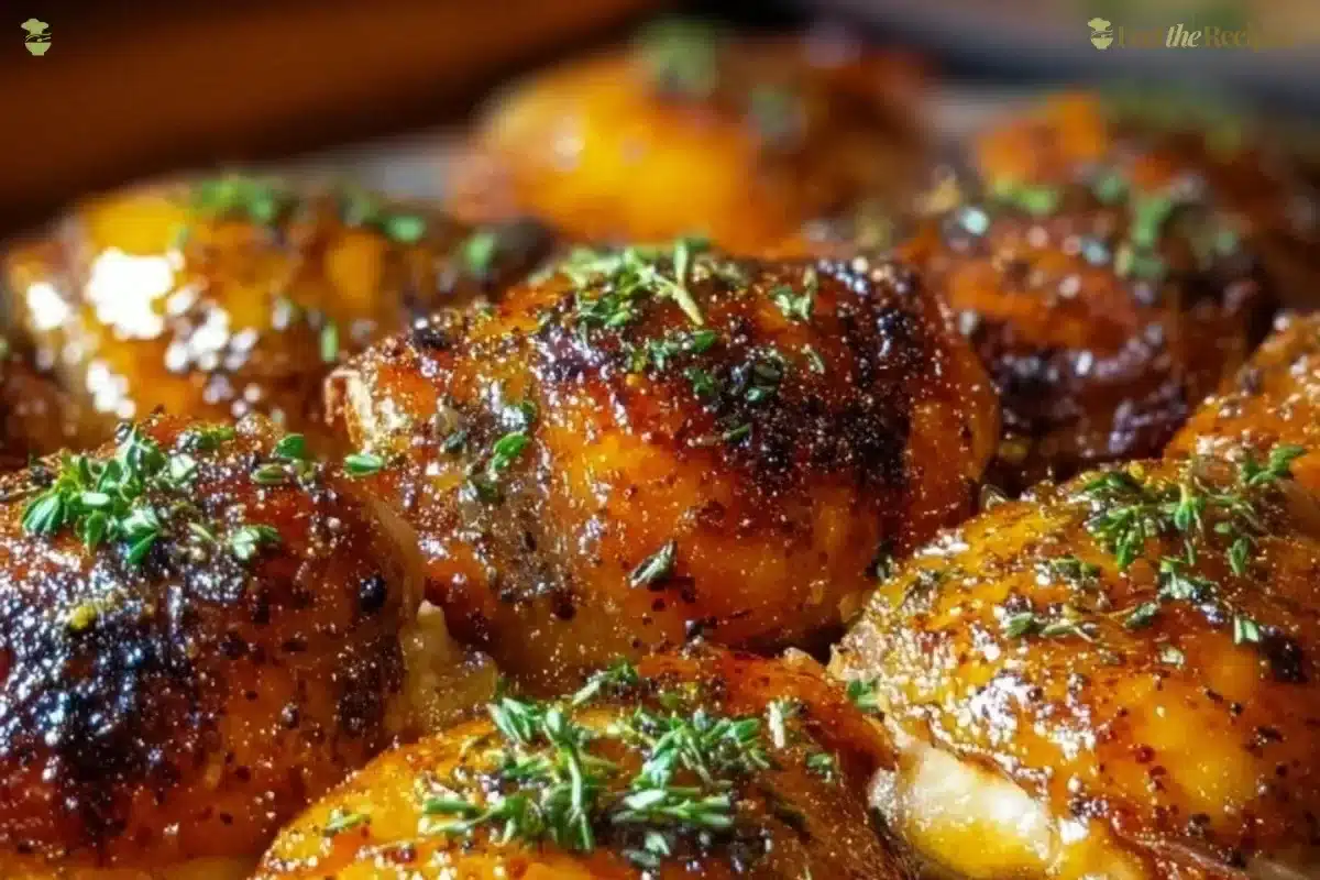 For a little finishing touch, spoon any pan juices over the thighs just before serving. Those juices are concentrated flavor glossy and savory. Garnish with chopped parsley or a few sprigs of thyme. A squeeze of lemon adds a fresh lift.