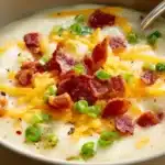 Baked Potato Soup is the ultimate cozy comfort dish creamy, cheesy, and full of heartwarming flavor. It’s quick to prepare, family-friendly, and perfect for chilly evenings when you crave a warm hug in a bowl. Every spoonful brings back the laughter-filled nights at abuela’s kitchen table, where this soup turned ordinary dinners into fiestas of sabor y alegría. Trust me, amigos, once you try it, you’ll keep coming back for más.