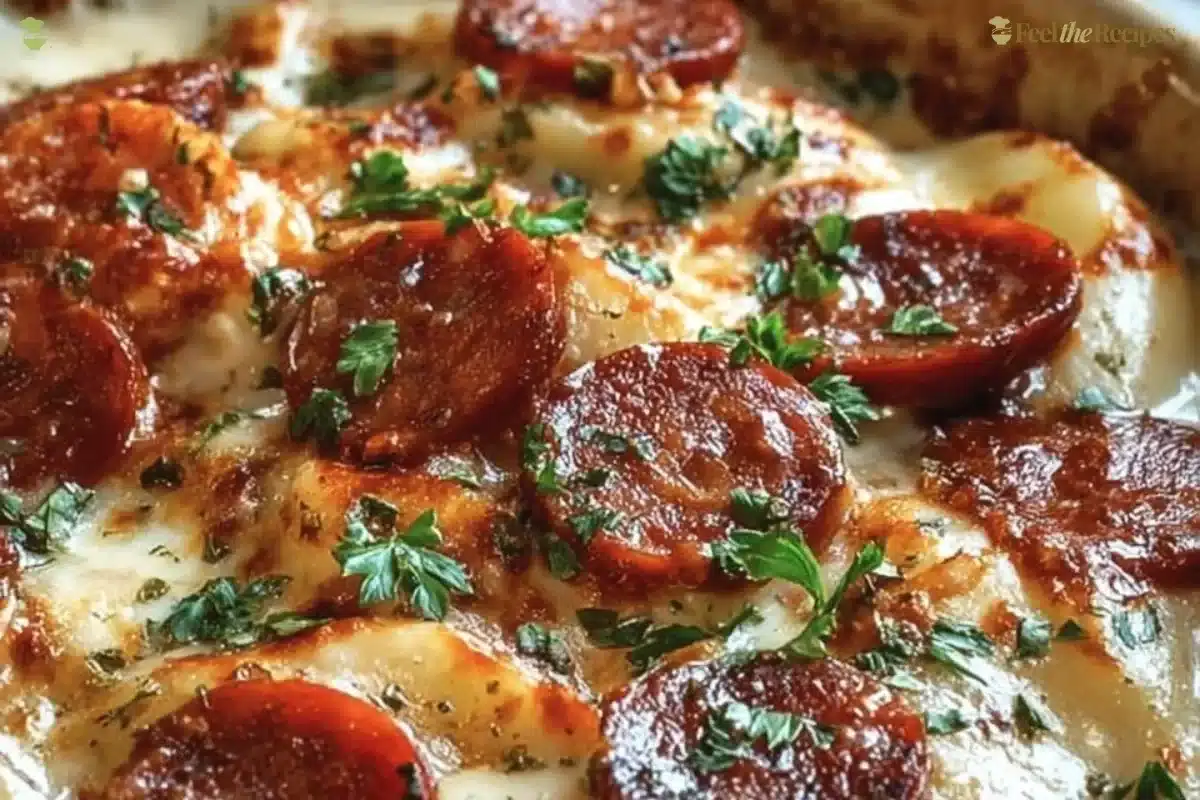 - Mushroom and onion: Sauté a cup of sliced mushrooms and half of a diced onion with the kielbasa, then layer them in. That adds an earthy note and a little sweetness.