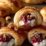 Delightful bites of flaky crescent rolls filled with smooth cream cheese and tart cranberry sauce, perfect for gatherings or cozy evenings at home.