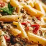 I want you to feel confident making this tonight. I’ll walk you through every step in a calm, friendly way. If you’ve cooked a little or you’re new to the stove, you’ll find this recipe clear and encouraging. And if you’ve made similar dishes, I’ll share little tricks to make it reliably delicious every time. If you want a different creamy pasta with ground beef to compare, take a look at this creamy garlic butter pasta that uses similar techniques and flavor-friendly swaps.