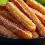 There’s something magical about the way the warm apples marry with the crisp coating of breadcrumbs. When I make these fries, I remember weekend gatherings, sunny afternoons in the backyard, and the joyous sounds of my children giggling alongside their cousins. The crispy texture, sweet aroma, and vibrant colors reflect not just the dish itself but the love and alegría (joy) that go into making it. Each bite is a playful nod to those simpler times with mi familia.