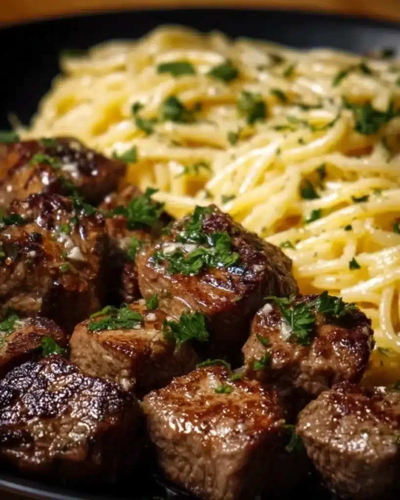 Garlic Butter Steak Bites with Creamy Parmesan Pasta