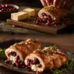 Serving this chicken is an opportunity to practice care and presence. Sit with the idea that a plate is more than food. It is a way of sharing warmth. Carry the skillet to the table so the steam and aroma greet those around you. If you prefer, slice the chicken on a wooden board and let the melted brie and cranberry filling ripple out like a small surprise.