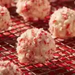 Place the Peppermint Crunch Balls on a white or blue platter for a winter palette. Scatter a few whole candy canes and a small bowl of cocoa on the side. Let guests pick their favorite pairing. For a touch of color, add pomegranate seeds or cranberries in a small bowl nearby for a tart contrast.
