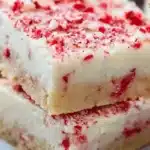 - Sprinkle with additional peppermint candy bits and optional sprinkles before slicing into bars.