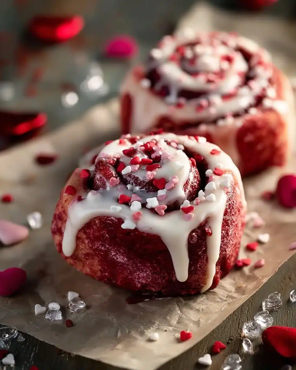 Red Velvet Valentine’s Day Cinnamon Rolls