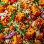 In the hustle and bustle of life, it’s easy to forget to nourish ourselves properly. This Roasted Sweet Potato Quinoa Salad embraces warmth and kindness, both in its creation and its essence. Imagine the soft creamy sweetness of roasted sweet potatoes, paired with the wholesome crunch of quinoa and bright arugula. Each bite sings of comfort and care, providing your body with the healing energy it deserves.