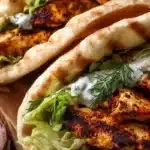 If you are cooking for one, fold your pita gently onto a plate and pair it with a small salad or a cup of warm broth. The textures should complement each other: warm chicken, cool slaw, and creamy avocado. Notice the warmth of the plate under your hands, the steam rising, and the scent of lemon and dill. Eating with attention will deepen the restorative qualities of this simple meal.