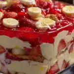Strawberry Banana Pudding Dream is much more than just dessert; it is a celebration of simple pleasures. When we prepare this dish, we are not just mixing ingredients. We are weaving love and care into every layer. Each component plays a role in nourishing both body and spirit. Ripe bananas bring natural sweetness and energy, while strawberries are bursting with vibrant flavor and nutrients, rich in Vitamin C. The creamy mixture of pudding and cream cheese provides a sense of softness that complements the crunch of vanilla wafers beautifully.